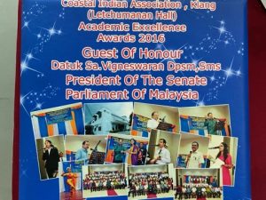 Coastal Indian Association (CIA) Academic Excellence Award for the year 2016